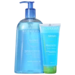 Kit Bioderma Atoderm Sébium traz um gel de banho suave que respeita o equilíbrio da pele, suaviza e protege; e um gel de limpeza facial que remove as impurezas e controla a oleosidade com fórmula equilibrada e sem ressecar a pele.