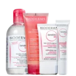 Kit de limpeza e cuidados para o rosto. Kit Bioderma Sensibio promove uma pele mais limpa, hidratada, descansada e rejuvenescida. Todos os produtos que você precisa para manter o cuidado diário com a pele.